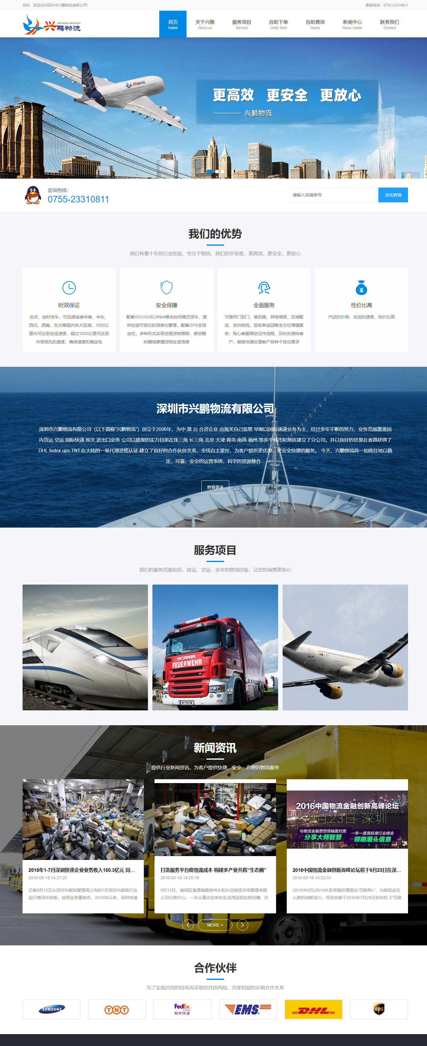 深圳市興鵬物流有限公司是通過客戶介紹找到創(chuàng)絡(luò)科技公司,所以在合作的前期沒有簽訂合同就直接下定金合作,再次十分謝謝興鵬物流公司的信任。該網(wǎng)站采用的是淺藍(lán)色為主,整體給人感覺是清潔,大方的風(fēng)格。興鵬物流公司創(chuàng)立于2006年,為中.港.臺.合資企業(yè).由海關(guān)自己監(jiān)管.早期以國際速遞業(yè)務(wù)為主,經(jīng)過多年不斷的努力,業(yè)務(wù)范圍覆蓋國內(nèi)貨運(yùn).空運(yùn).國際快遞.報(bào)關(guān).進(jìn)出口業(yè)務(wù)